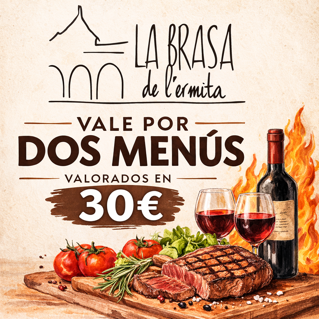 Este vale puede utilizarse para disfrutar de nuestra propuesta gastronómica y vivir la esencia de La Brasa de l’Ermita.